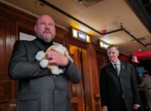 Just when I think my Sherlockian life can’t get much better, my dream of more than thirty years is realized. At the 2023 BSI Dinner, Michael Kean (the current “Wiggins”) calls me up to the stage to receive my official Investiture in the Baker Street Irregulars. The reaction of those assembled is worth the wait of decades!
